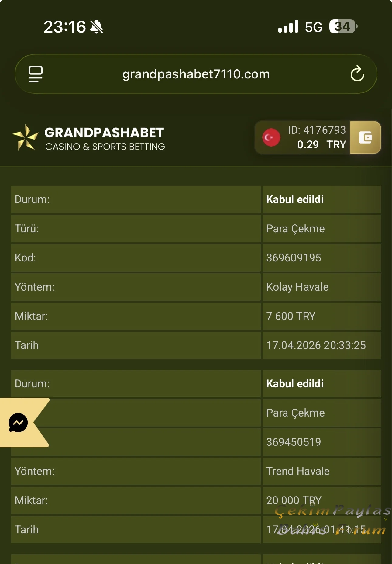 ÇEKİM PAYLAŞ Grandpashabet çekim ödedi